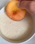 3. Dip a thin peach slice into pancake batter and add it to a heated skillet. When you see the pancake batter bubble, flip the pancake and brown the other side of the peach-filled pancake.