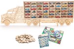 One of the boys in the family wanted to display his favorite cars in his room with this beautiful wood carved toy car storage organizer. This display case can be mounted on a wall or free standing and holds 48 cars. It includes wood tiles to include the child’s name on their stand and a sticker game that encourages children to clean up their toy cars.
