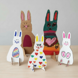 I love the Mini Mad Things web site. For a very low cost you can purchase the templates for these bunnies to print out and trace onto cardboard from the recycling bin. After cutting them out I let the kids use paint, markers, or Sharpie Paint Pens to decorate the bunnies and use the bunnies for their Easter displays.