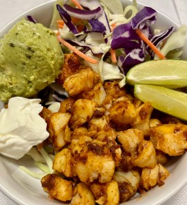 I found this recipe on the skinnytaste web site. No air fryer, no problem! Just heat a skillet on high heat, spray with oil, and cook 5 to 6 minutes. I also roll the fish and veggies into a tortilla wrap or into a taco shell for children.