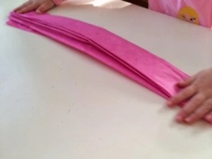 1. Stack eight sheets of white tissue paper and fold like a fan. The folds should be one-inch in width.