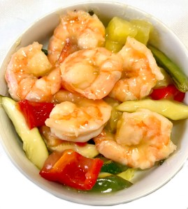 I found this healthy shrimp stir fry recipe on the endless meal web site. An easy to make stir fry sauce coats the tender shrimp, sweet pineapple chunks, and my Nanny Kids’ favorite veggies. I added zucchini and green pepper to the recipe. It’s quick to make and so much better than takeout.