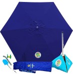 The BeachBub sits on the beach sand like a Patio Umbrella placed on the deck. No deep holes to dig or screws to twist. The umbrella really stands out due to its lightweight construction. While there are a lot of parts, everything fits inside the included carrying case, which weighs just nine pounds, so it’s perfect for toting to and from the beach. Nannies love the padded shoulder strap, which adds to portability of this umbrella. Although the initial assembly may take 15 minutes, it can be completed in less than five minutes once used to setting it up. Dismantling is even faster.