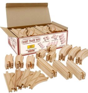 This is a great set of extra train tracks that can be used with all major brands of wooden train trains including Brio. When you need extra train tracks, don’t spend extra on name brand train track collections when Right Track gives you more track for less money.