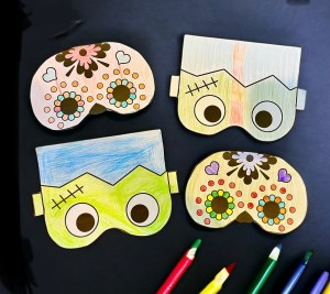 Card Stock Paper Printer Mask Templates Crayons or Colored Pencils Scissors Hole Punch Elastic or Jumbo Craft Sticks Stapler or Paste