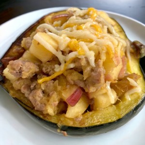 10. Scoop the turkey/squash mixture back into the squash and top with cheese of choice.