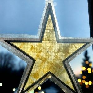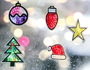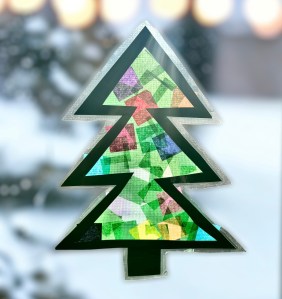 These sun catchers make beautiful Christmas decorations made by children of nearly any age. I found this fun Christmas craft on Fun365 web site. They provide free printables that I used but you can use any simple silhouette pattern you wish. I find it easier to use high quality self-adhesive laminating sheets than contact paper.