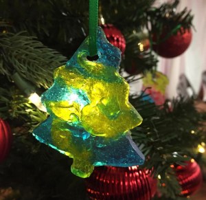 Despite working as a nanny for 30 years I can always find a new way to make Christmas ornaments each year. I found this super easy melted candy ornament idea on the frugalmomeh web site. Our ornaments turned out beautiful looking like stained glass.