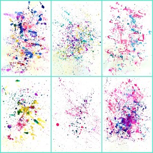 4. Allow the children to sprinkle and splash water color paint onto the paper.