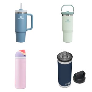 The Stanley Quencher also comes in a comparable 30-ounce. There is a larger 64-ounce but it doesn’t have a tapered base and looks more like a jug. The 20-ounce and 14-ounce sizes look similar to the 40-ounce, but they don’t have a handle.