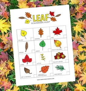 3. Have the kids bring the list with them on a nature walk and mark off when they find an appropriate leaf with a marker.