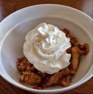 3. Bake about 30-minutes or until topping is golden brown and the apples are tender when pierced with a fork. It’s best served warm with whipped cream or ice cream.