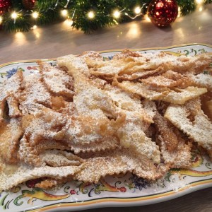I worked as a Nanny, Family Assistant, and Cook for a Polish family for 13 years. Every Christmas the Grandmother, Mother, and children make Chrusciki (Angel Wing Cookies). They are light and crispy. They are best served right away but can be stored at room temperature for several days on a large platter, separating the layers with waxed paper, and by covering them all with aluminum foil — not plastic.