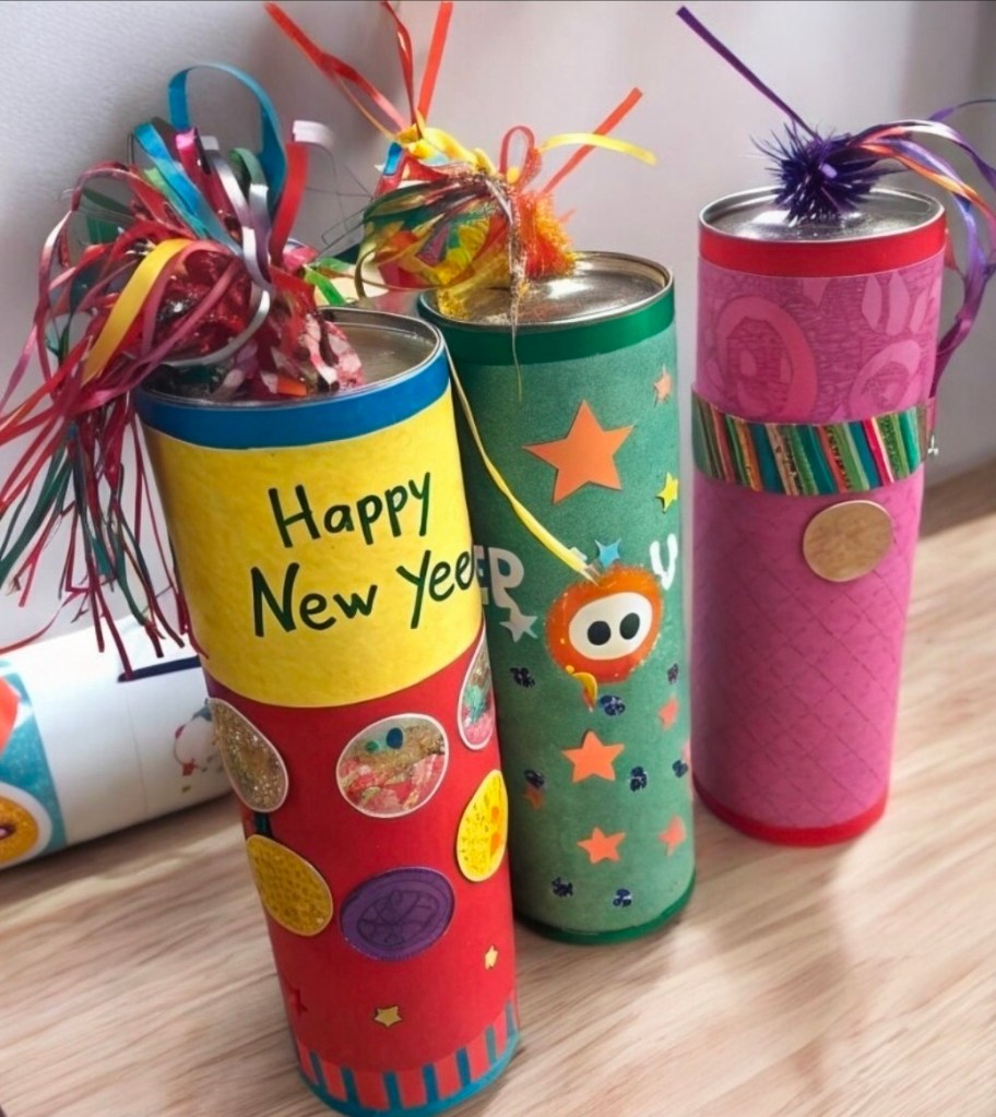 If you are working with kids on New Year’s Eve or just getting them excited for a New Year’s Eve party, help them make noise makers to ring in the new year. They can shake their homemade noise makers at midnight!