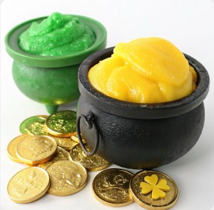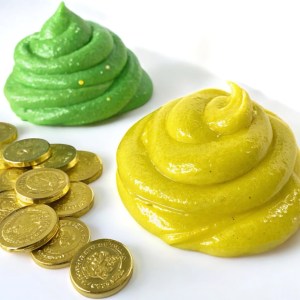 Homemade slime is a fun project that gives kids hours of fun. Clear glue gives this slime a really pretty translucent color that goes great with the green and gold colors for Saint Patrick’s Day.
