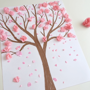 3. Have the kids to tear pieces of yellow tissue paper and scrunch them into blossoms.