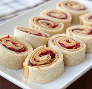 Make simple peanut butter and jelly sandwiches extra fun for children to eat by rolling up bread or flour tortillas into pinwheel sandwiches. Stick toothpicks into these bite-sized sandwiches and call them hors d’oeuvres. These fancy treats are also the perfect size for children’s tea parties.