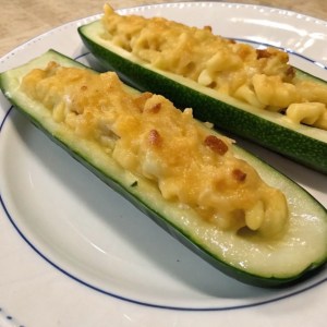 5. Transfer zucchini boats to a 9”-x-13” baking dish and spoon mac into zucchini. Bake until zucchini is tender, 15 to 18 minutes.