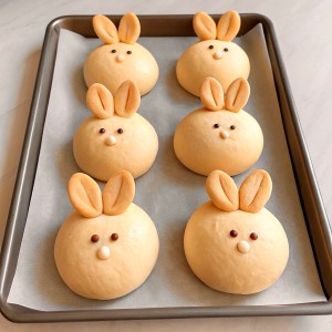 9. Bake the bunny buns for 20 minutes. You can cover the ears with tin foil if they start to brown too quickly.