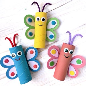 Children are dazzled with butterflies and their vibrant beauty. After reading children’s books about butterflies, (see below), I used cardboard rolls, punched out cardstock paper, and craft supplies to make butterflies with the children in my care.