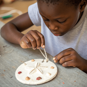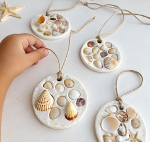 10. After the clay has fully dried, thread a piece of twine through the hole at the top to make a souvenir mosaic of their day at the beach.