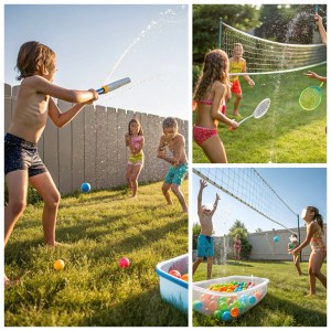 1. A pitcher throws water balloons instead of a baseball, and a batter tries to hit them with a plastic baseball bat.