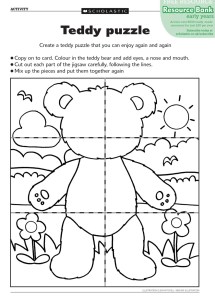 Print out this teddy bear puzzle and let the kids color it and cut it and put it back together again and again.