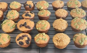 - Cool in the pan for 5 minutes and then remove to a wire rack to cool completely (if making ahead, store muffins in a freezer bag and defrost for about 30 seconds in the microwave).