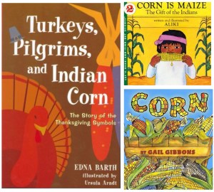 Be sure to read “Corn” by Gail Gibbons, “Corn is Maize The Gift of the Indians” by Aliki, and “Turkeys, Pilgrims, and Indian Corn” by Edna Barth when making this Indian corn craft.