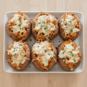 The children in my care love this double stuffed chicken sweet potato recipe because it’s the perfect mix of cozy, cheesy, and naturally sweet flavors all in one bite. The creamy filling and fun “stuffed” presentation make it exciting for little ones, while the hidden nutrients from the sweet potatoes and protein from the chicken make it a win for nannies and parents. If you are short on time, use shredded pre-cooked rotisserie chicken.