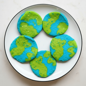 Turn breakfast into a planet-saving celebration! These Earth Day pancakes are a fun, hands-on way for kids to mix, measure, and create, whether you’re making them from scratch from the recipe below or using your favorite mix. Inspired by a fun idea from Brightly Learning on Pinterest. I have found it’s best to cook the pancakes really slowly to allow the earth pancake look blue and green and not brown. If you cook the pancakes quickly they will brown.